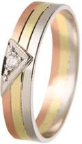Šíře prstenu 4,50 mm, červeno-žluto-bílé 14ti karátové zlato, úprava lesk, bílý přehoz s kamenem. Prsten lze vyrobit ze stříbra, Ag 925/000, za 1.894,- Kč/ks s DPH.