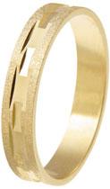 Šíře prstenu 4,00 mm, žluté 14ti karátové zlato, kombinace lesk, mat. Prsten lze vyrobit ze stříbra, Ag 925/000, za 1.558,- Kč/ks s DPH.